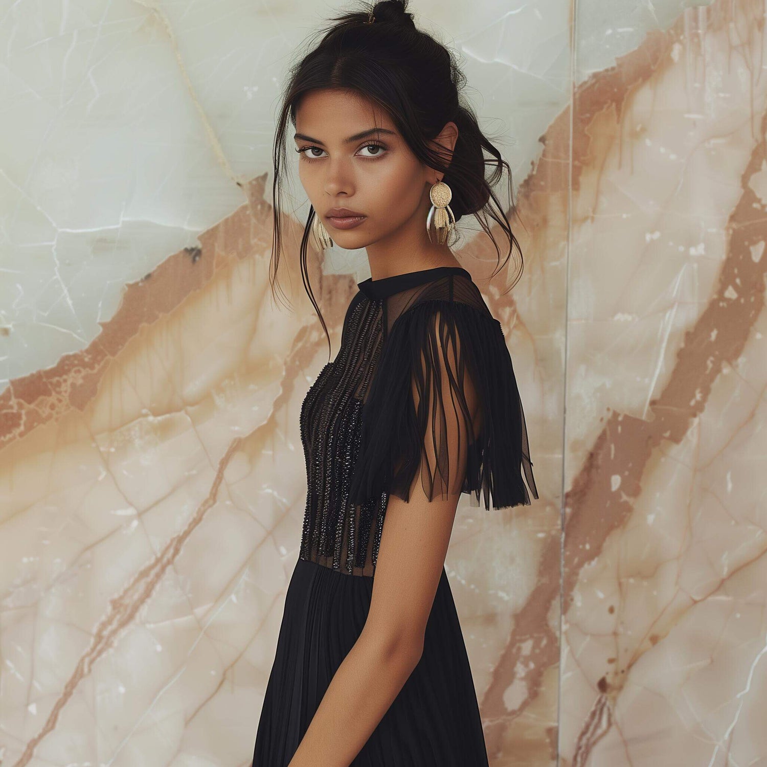 Whispers of elegance, a fluttering tale, where fashion meets nature's finest detail.