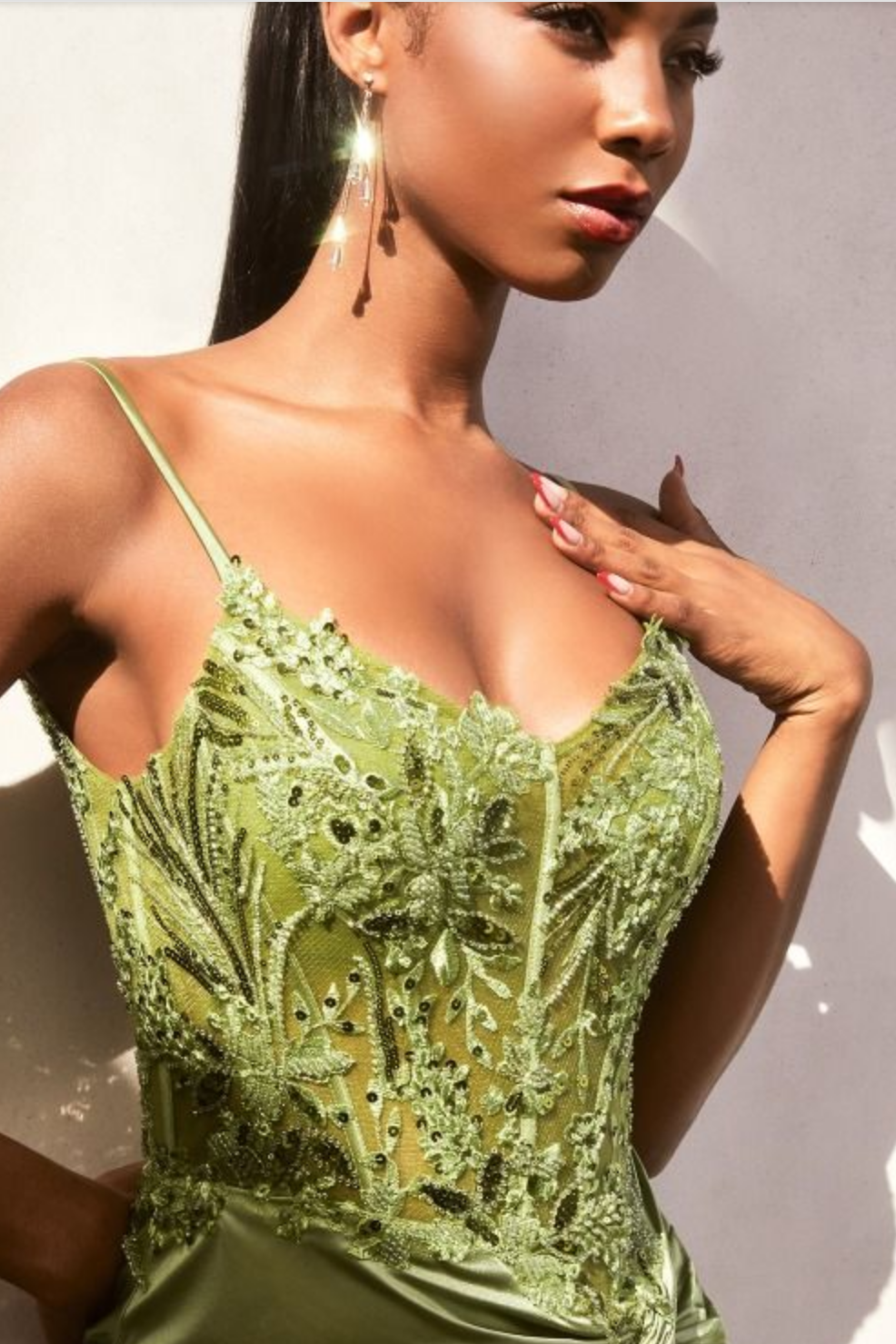 7 COLOURS AVAIBLE - FITTED SATIN GOWN WITH EMBELLISHED BODICE