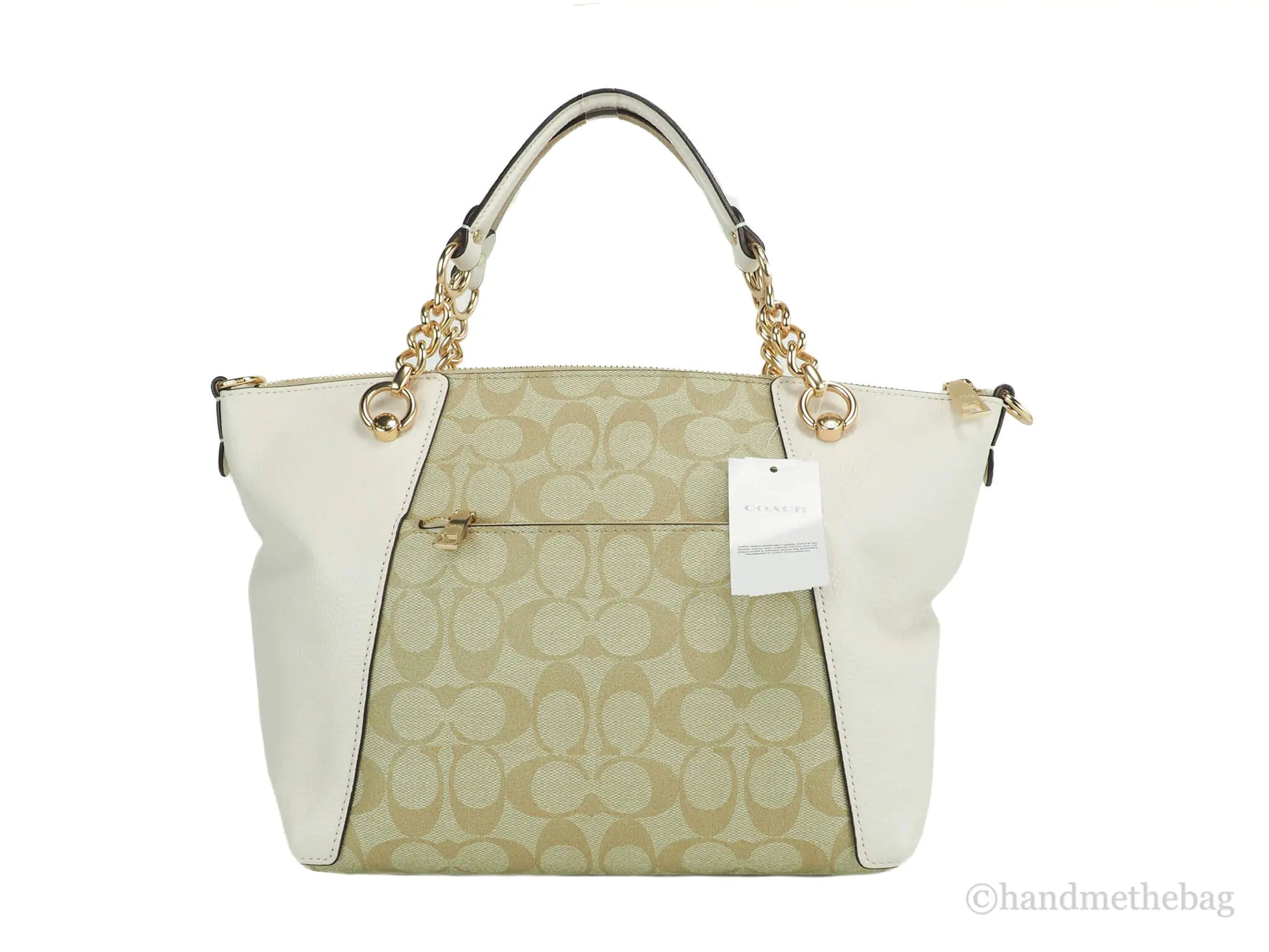 Style: Coach Kacey Top Zip Satchel Bag (Light Khaki/Chalk)