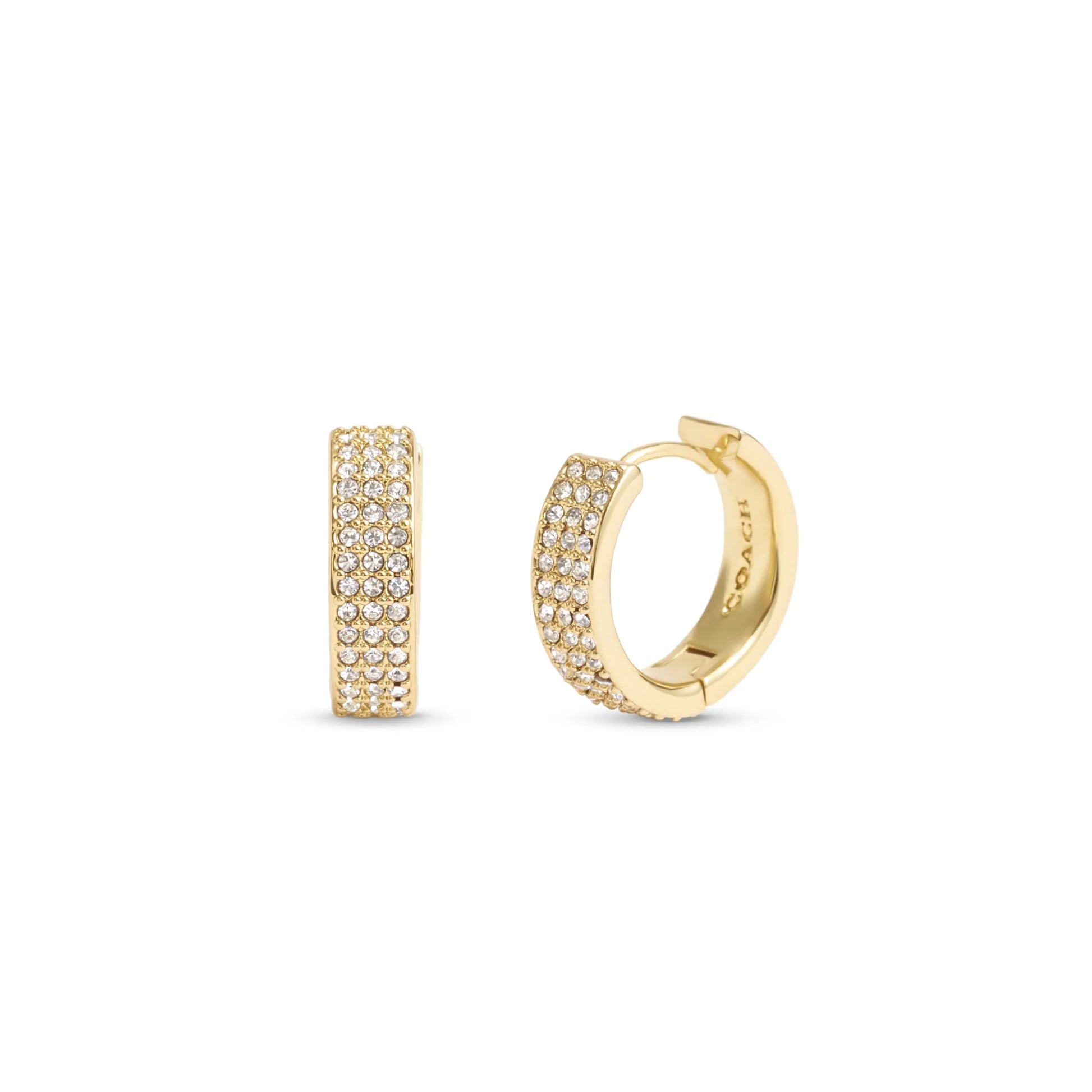 DescriptionMinimal huggies adorned with glistening pavé at front and hypoallergenic titanium post perfect for everyday. Earrings have a hinge closure. Made from brass glass crystal and titanium post.