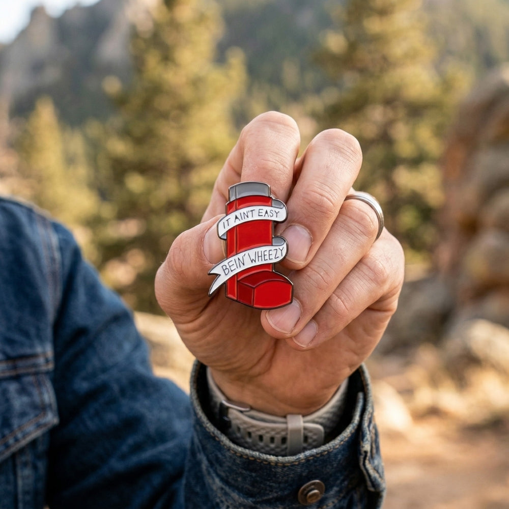 Embrace the struggle with a heavy dose of humour. This clever little accessory brings a lighthearted touch to everyday respiratory realities, perfect for those who know that catching your breath can sometimes be a full-time job. It's a cheeky nod to asthma warriors and anyone who's ever felt a little winded just tackling the stairs.