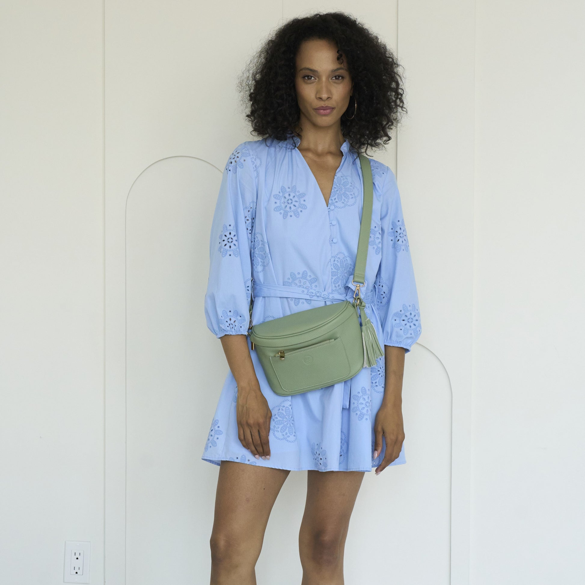 Ditch the bulky bag and upgrade to Jade, a charming vegan leather crossbody fanny pack. With its roomy interior and versatile adjustable strap, this bag adds a playful pop to any outfit. Available in four stunning shades, you'll have a tough time deciding which one to rock!