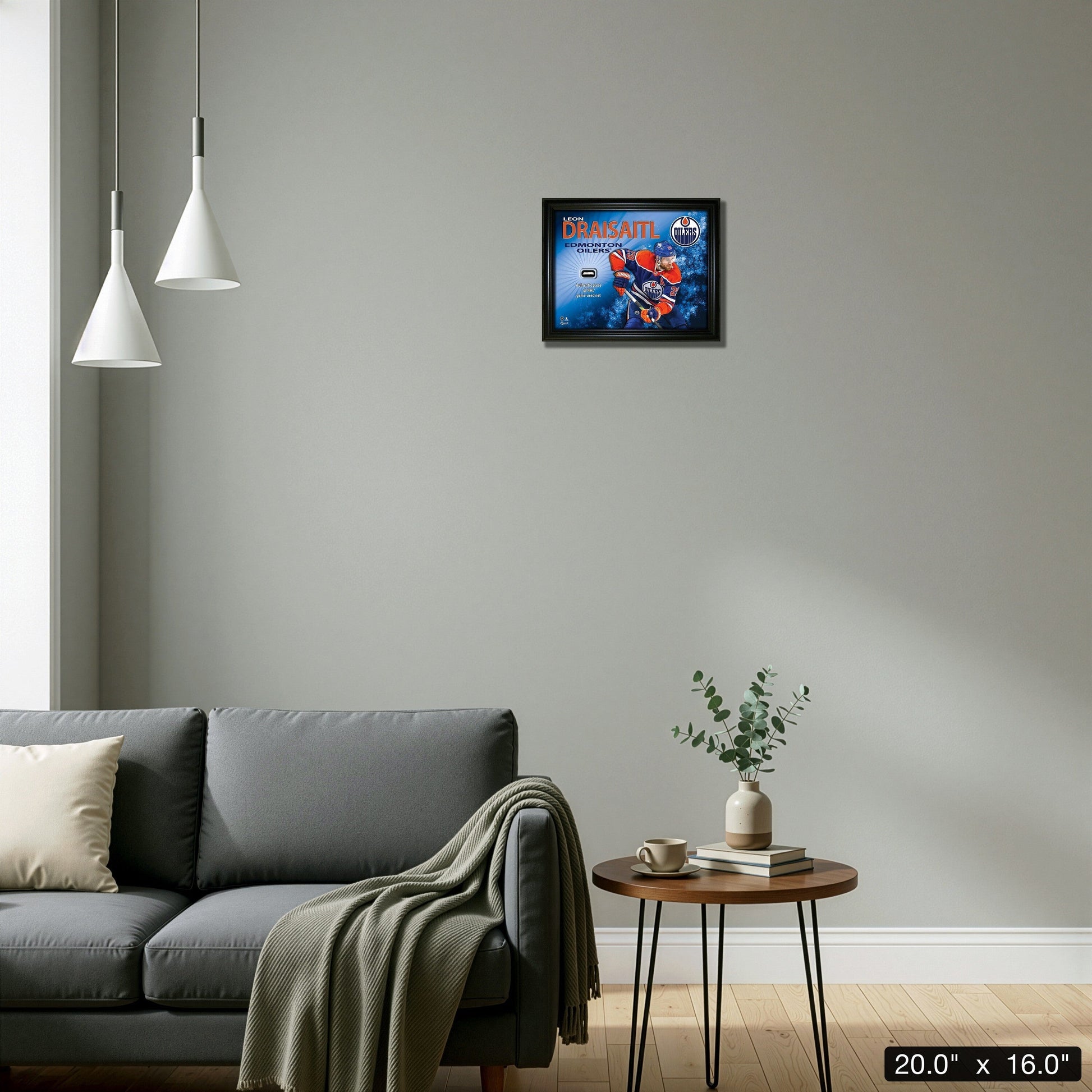 Leon Draisaitl 16x20 PhotoGlass Frame with Authentic NHL Game-Used Net – Edmonton Oilers