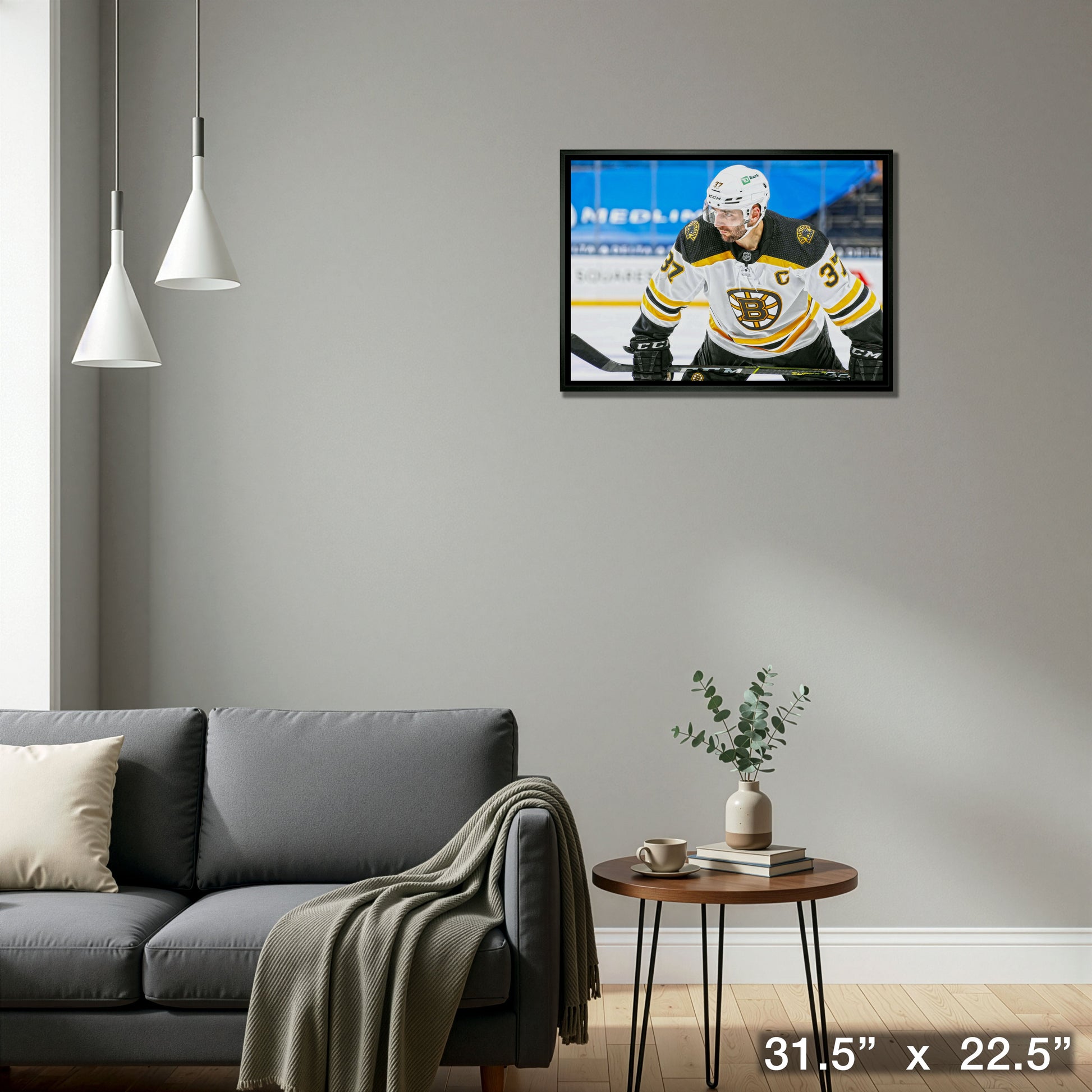This image has been printed on high quality art canvas before being professionally stretched and framed. This product is officially licensed by the National Hockey League (NHL) and National Hockey League Players Association (NHLPA). Made in Canada. Finished Size: 31.5x22.5"