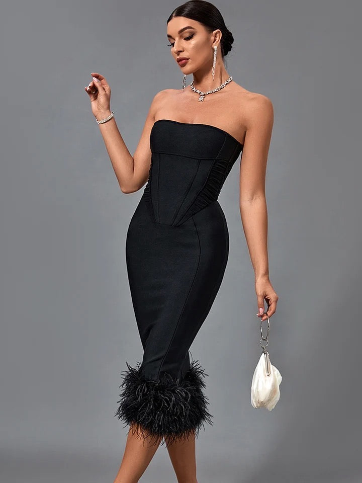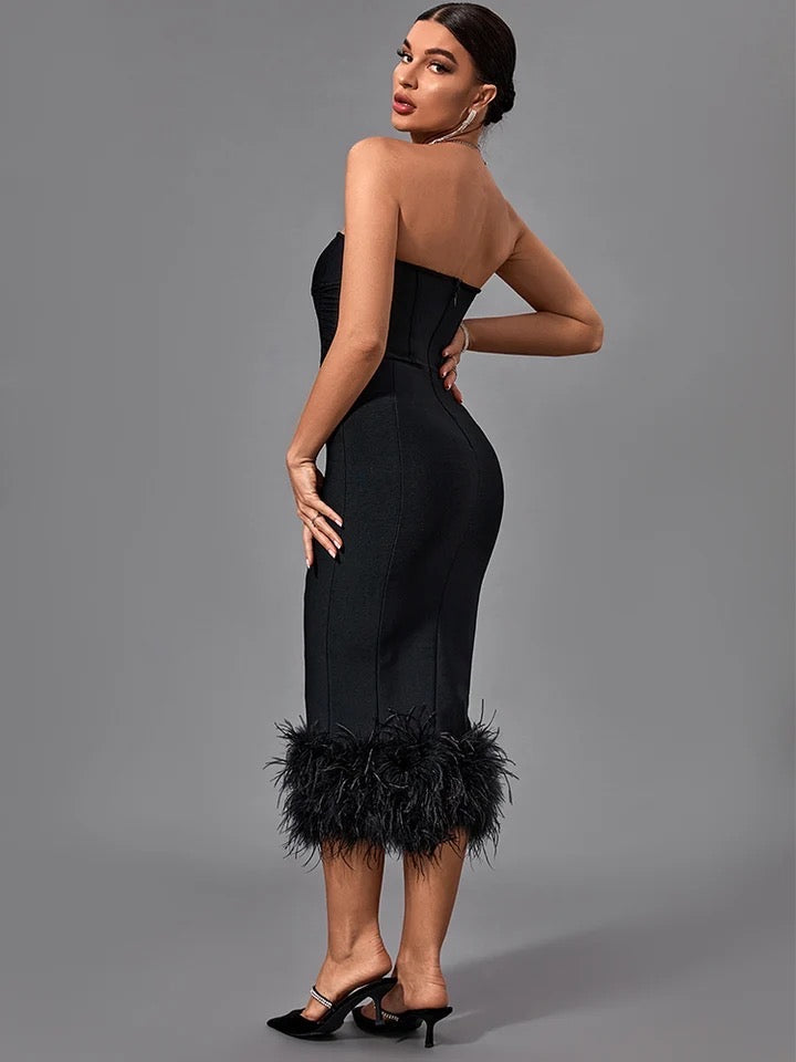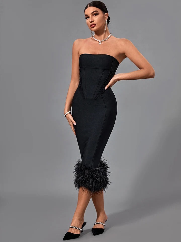 For the fashionista looking for a versatile black dress, this is your perfect match. The midi length transitions seamlessly from day to night while the stretch fabric hugs your shape in all the right places. Feel sexy, confident and refined every time you slip on this head-turning dress.