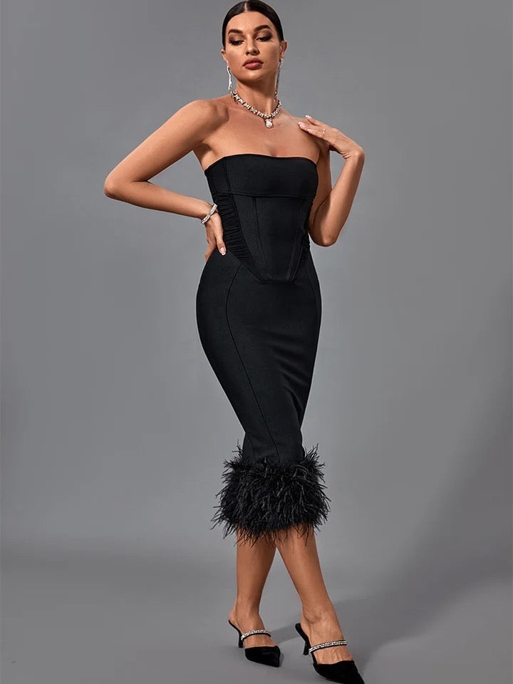 Catch the eye and light up the room in the Starlight Dress. This chic midi dress illuminates your style with: