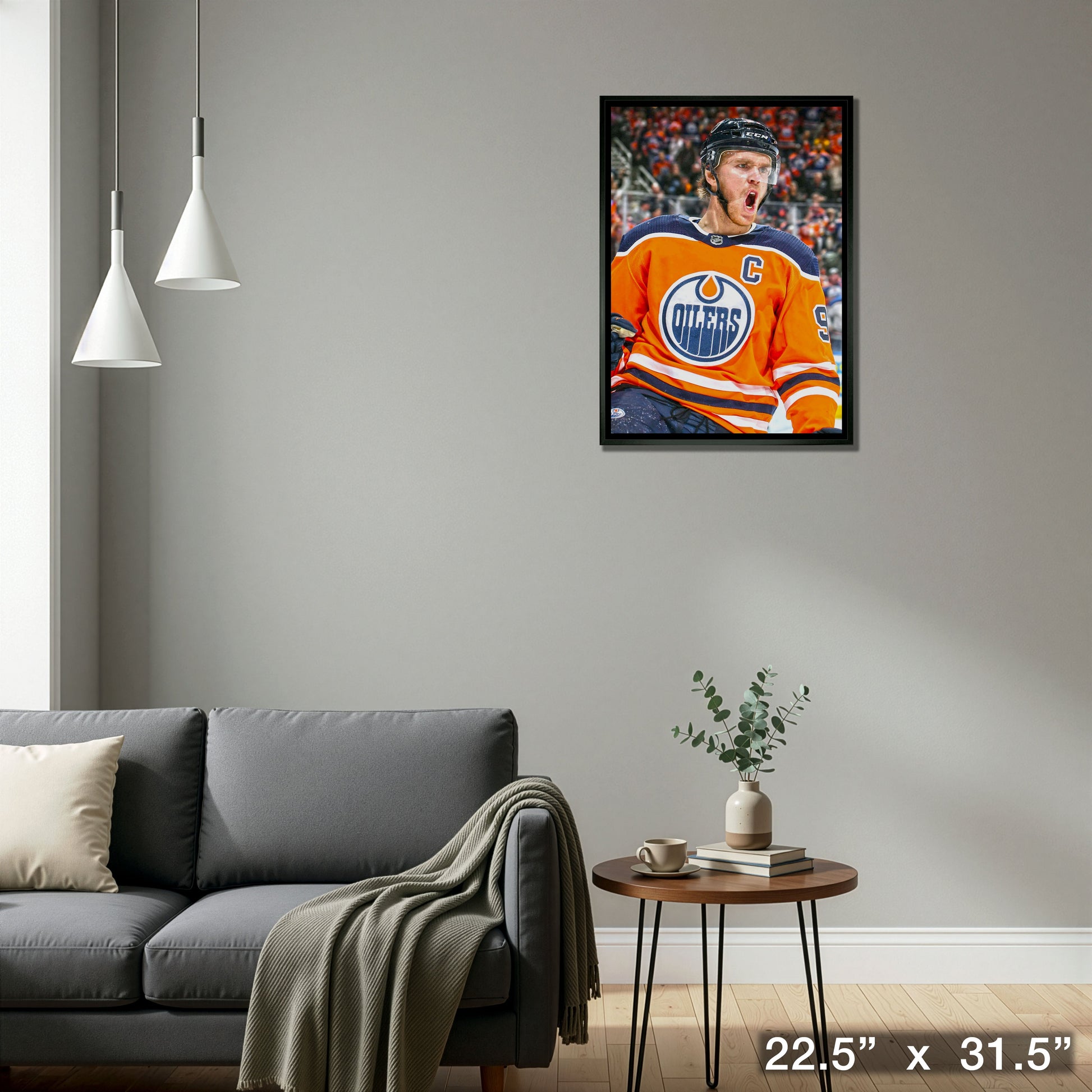 Connor McDavid Edmonton Oilers Framed 20x29 Goal Celebration Close-Up Canvas