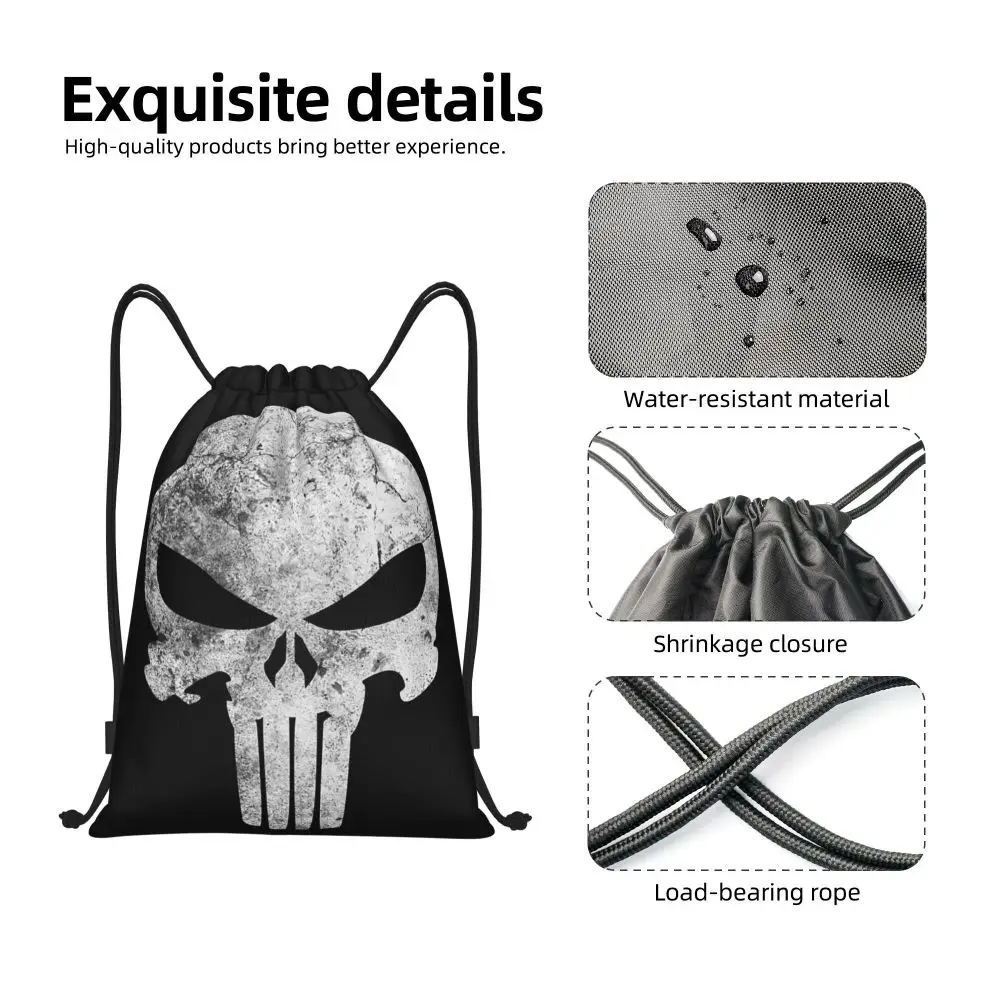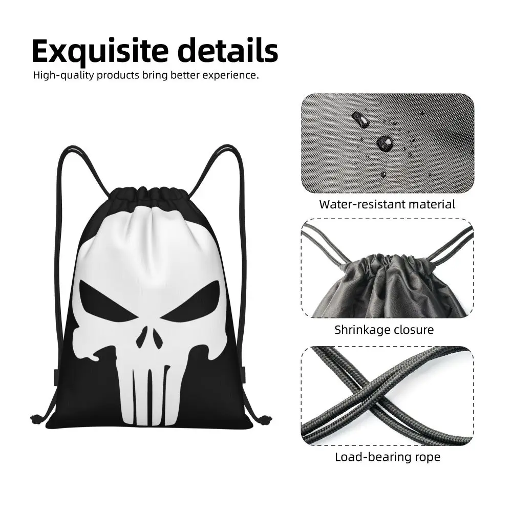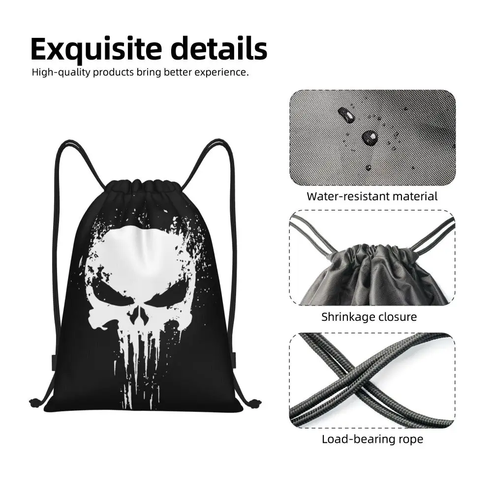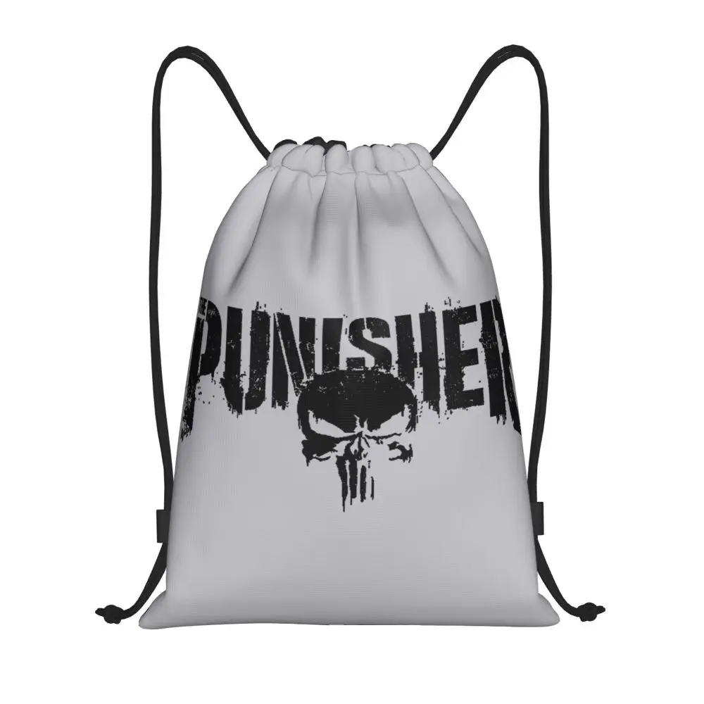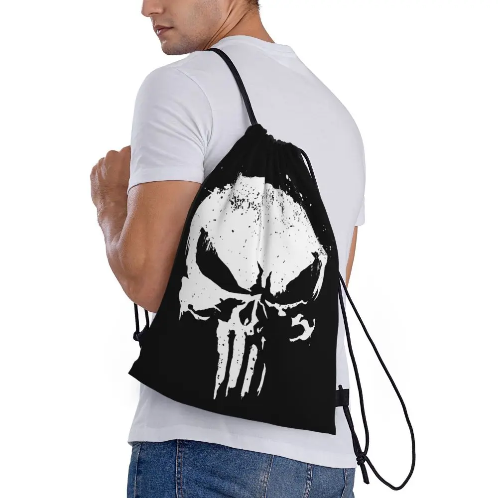 Custom Punisher Skeleton Drawstring Backpack Women Men Sport Gym Sackpack Portable Skull Bone Shopping Bag Sack