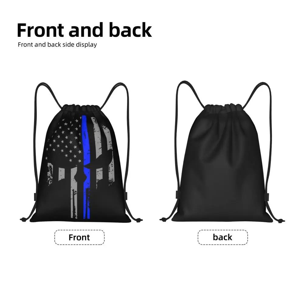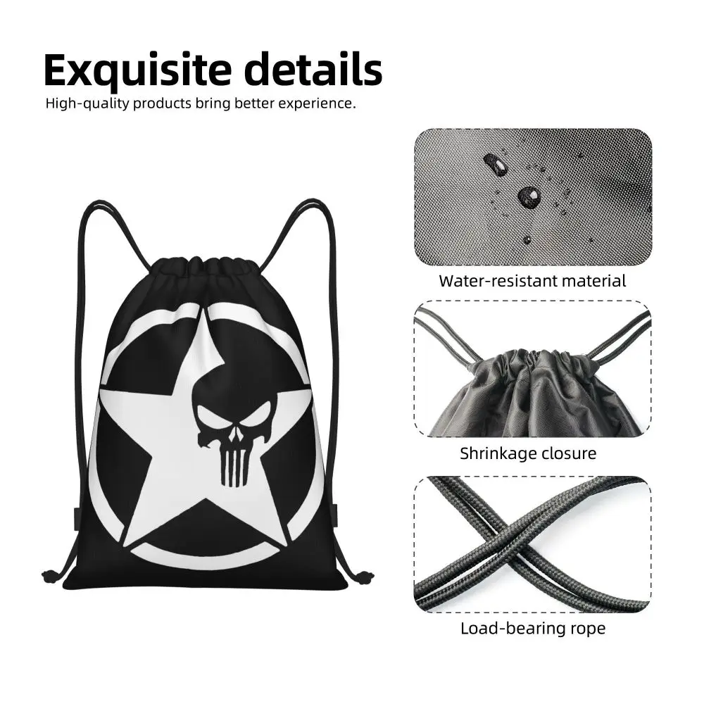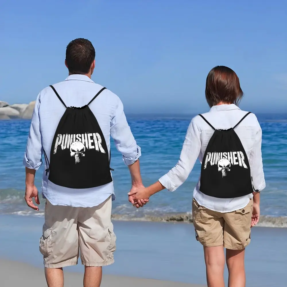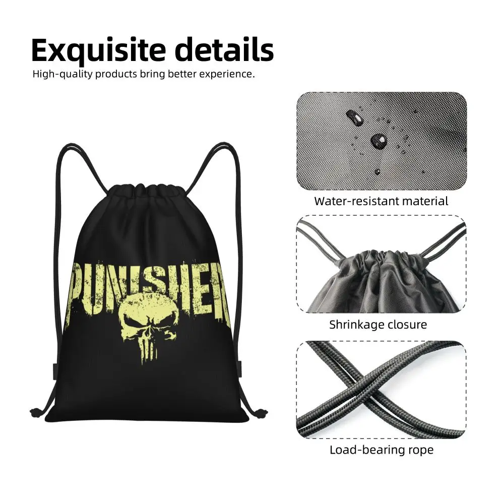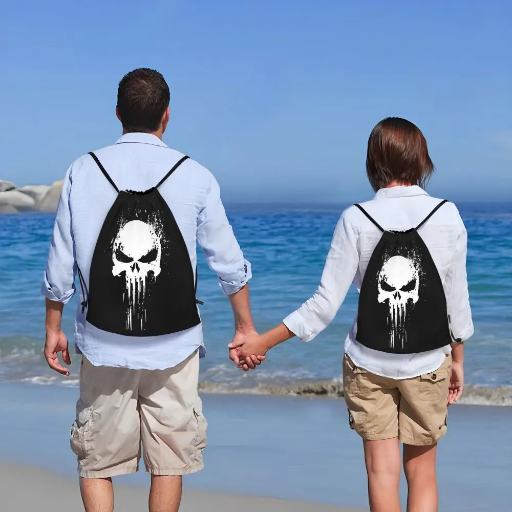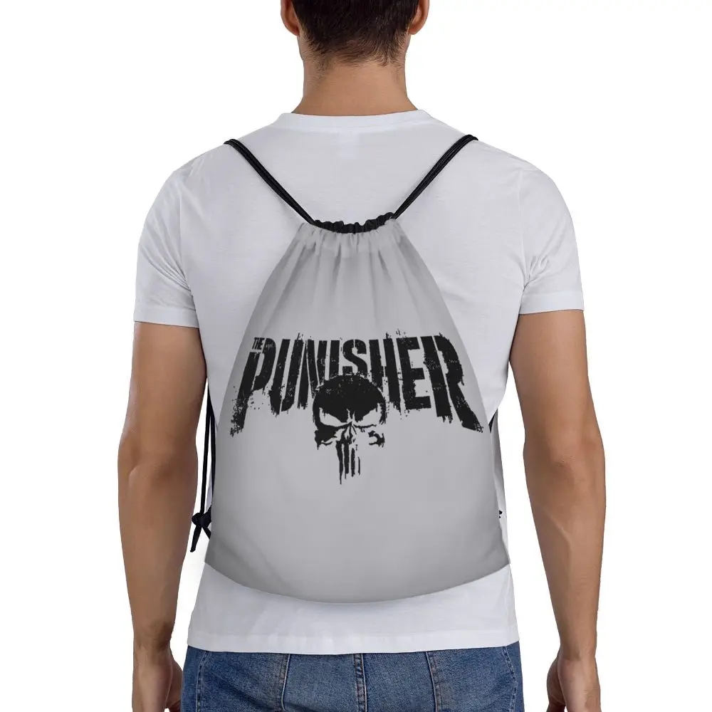 Custom Punisher Skeleton Drawstring Backpack Women Men Sport Gym Sackpack Portable Skull Bone Shopping Bag Sack