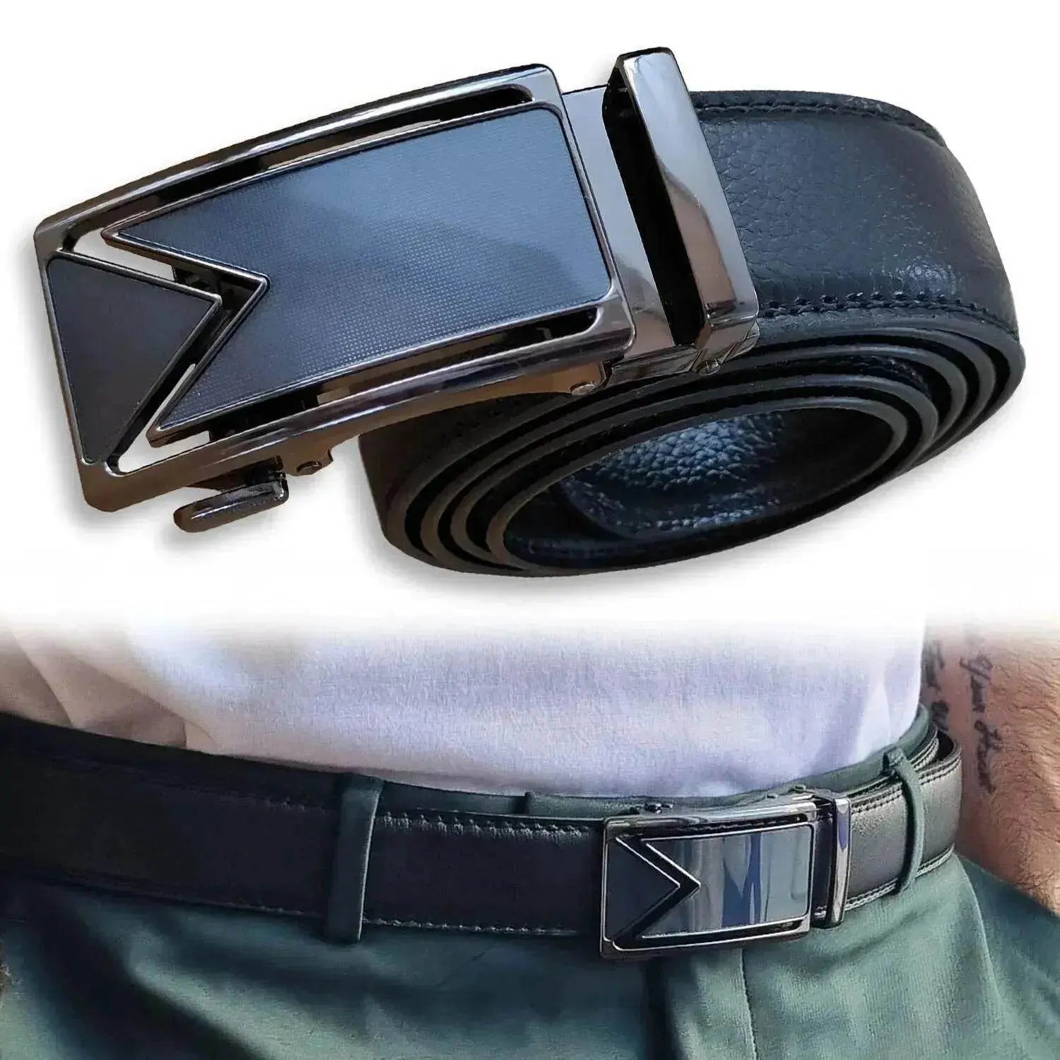 Easy to Use: Just slide the belt into the buckle and pull the leather belt through, the buckle simply auto locks the belt, release buckle by simply shifting small lever. Simple, smooth and fashion design belts for men.
