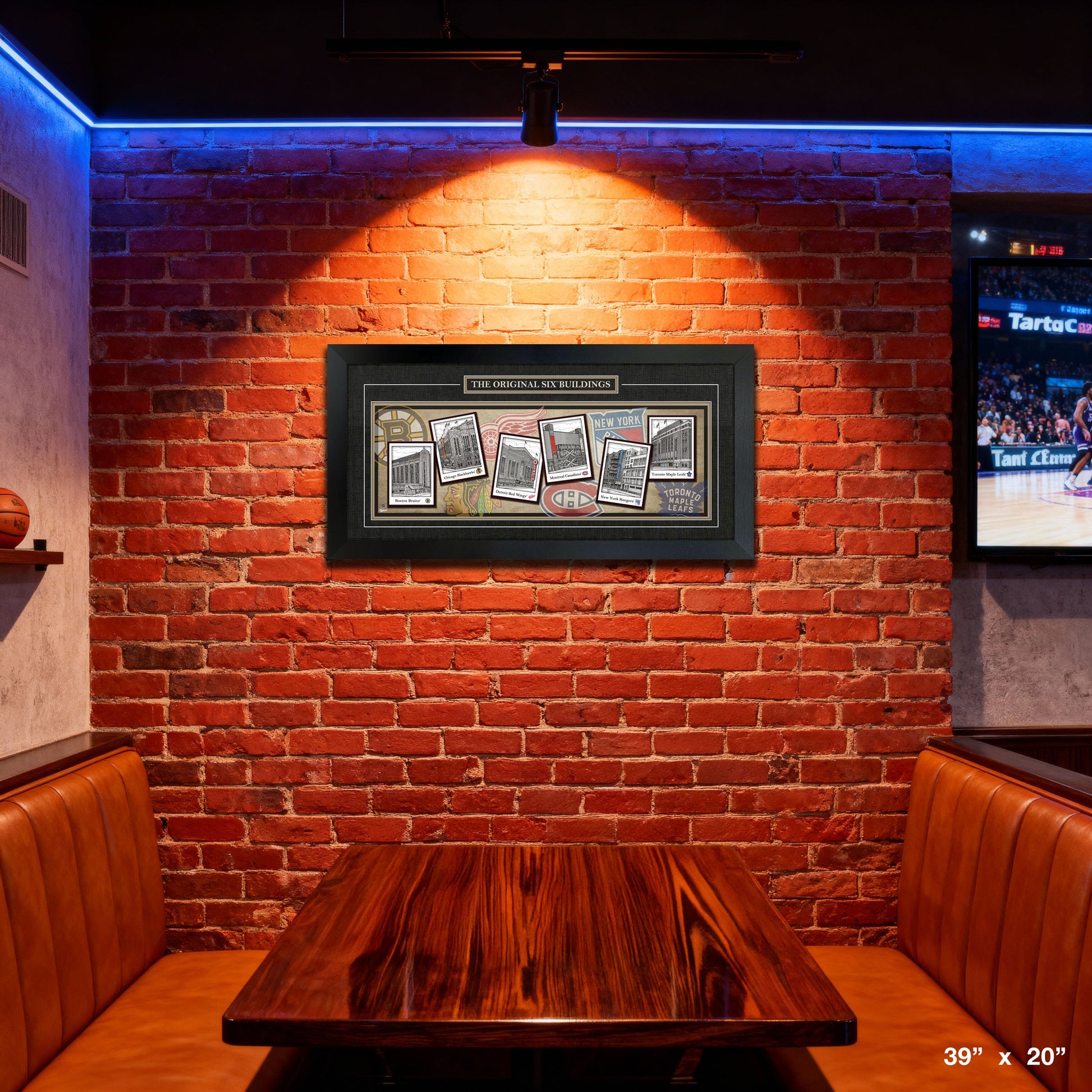This amazing frame features the Original Six Arenas in a panoramic print. A great gift for any long time hockey fan. FINISHED SIZE: 39x20"