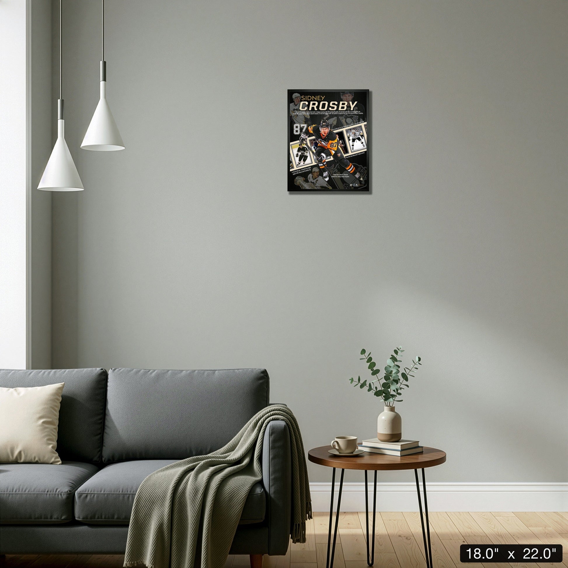 This 16x20" Sidney Crosby career collage contains various images of the Pittsburgh Penguins star throughout his career. Finished Size: 18 x 22"