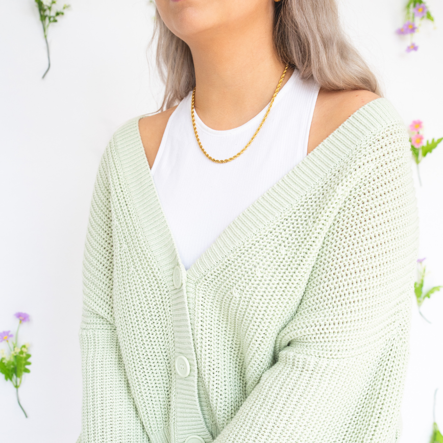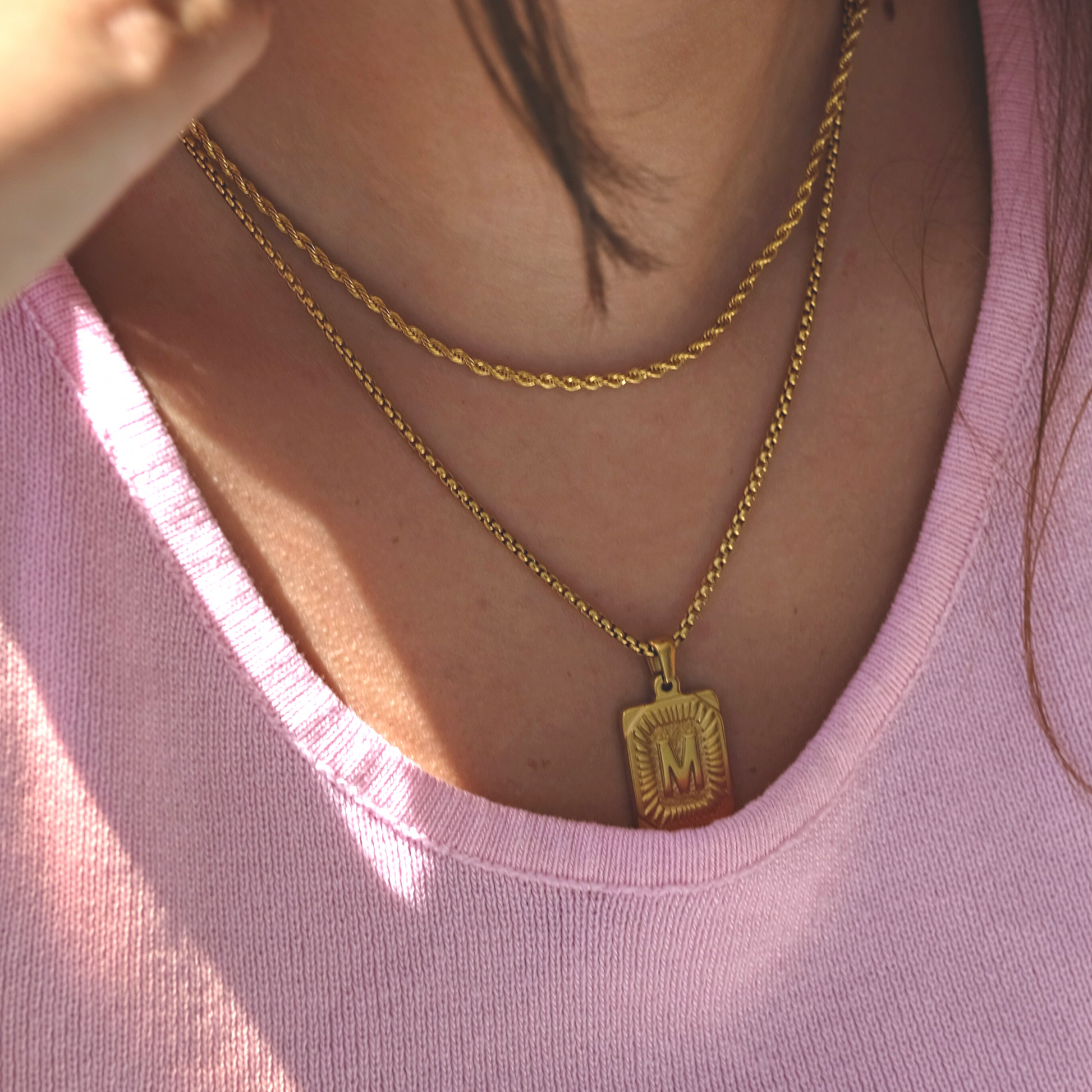 18k gold plated necklace, we used PVD coating. The base is made of stainless steel 316L.