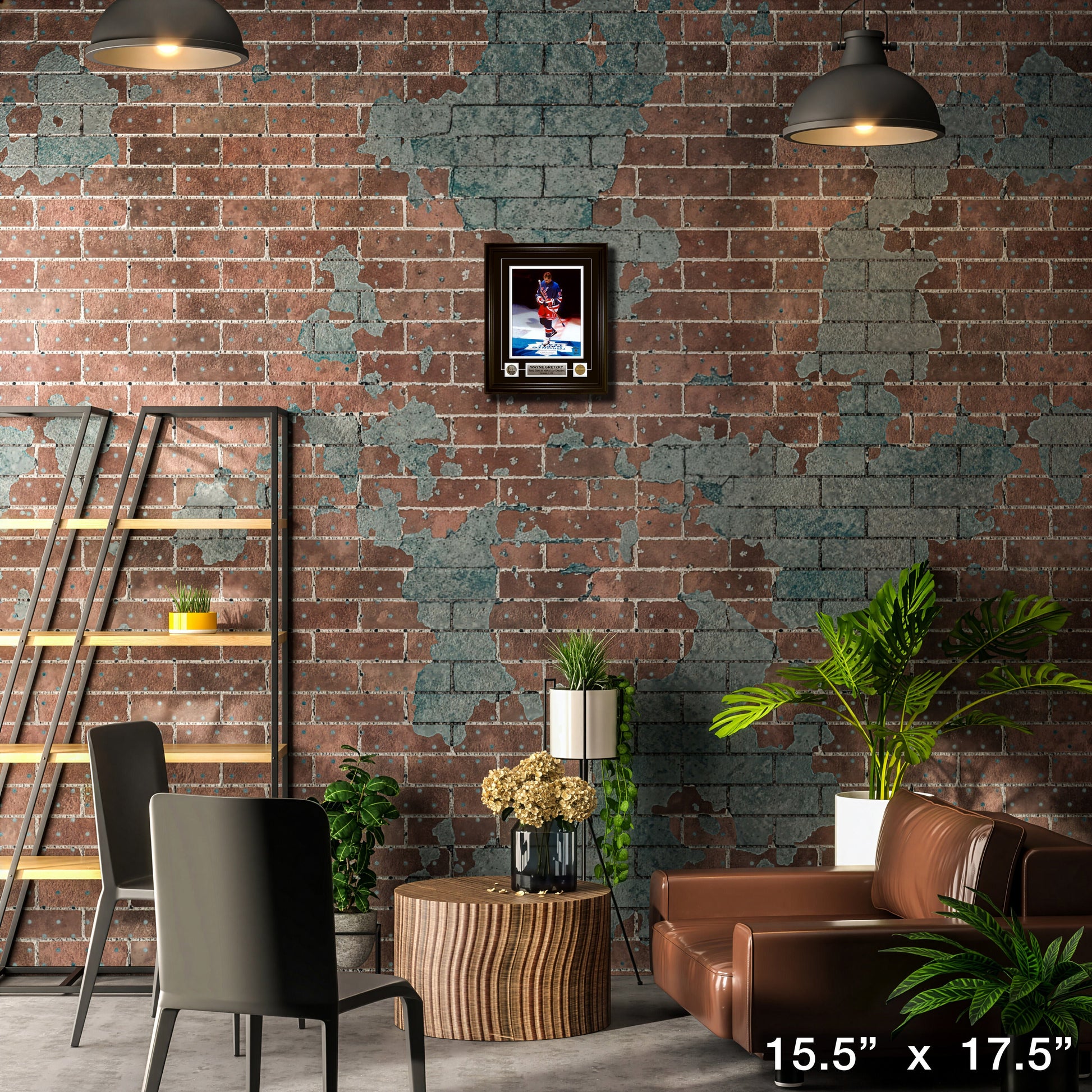 This photo frame features Wayne Gretzky in his final game at Maple Leaf Gardens. It comes complete with professional matting, decorative v-groove inlay, and a descriptive plate. The frame comes ready to hang with a sawtooth hanger. Made in Canada.. Finished Size: 15.5 x 17.5"